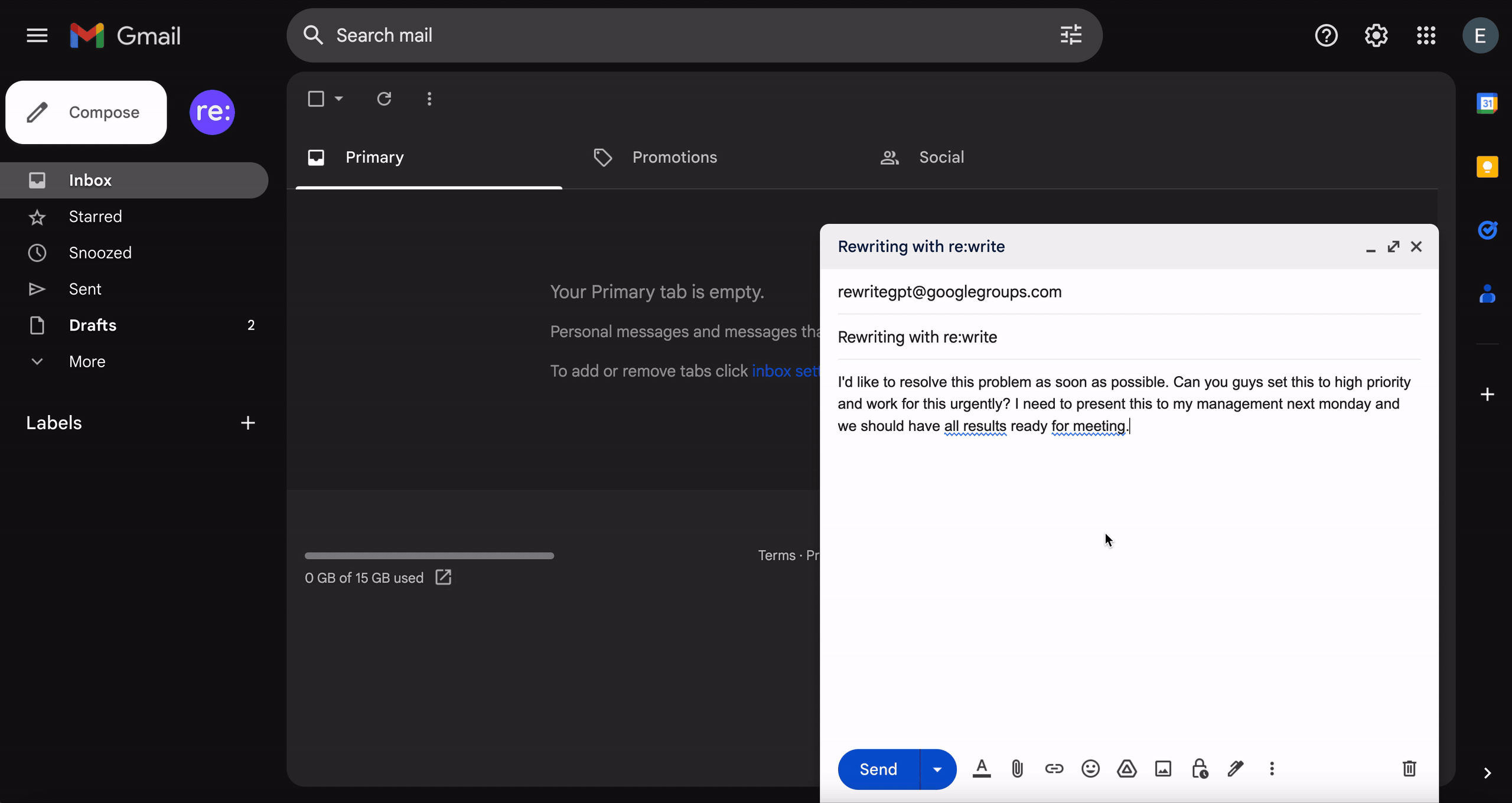 "Extremely satisfied with re:write! It's a conveninent and accessible tool that does exactly what I want it to: rewrite. Writing emails has never been easier."